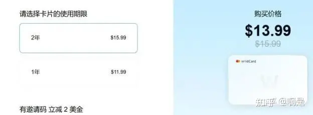 由于目前Chatgpt官方没有对大陆地区开放,开通Chatgpt4.0不能使用国内的银行卡或者信用卡,所以这个时候需要你准备一张可用于境外支付的实体银行卡或者信用卡,如果你和我一样,两个都没有,那就也使用目前最安全方便的WildCard虚拟卡,安全又快捷。 只需要开只需要开卡付9.99$/1年 或 13.99$/2年,剩下没有任何额外费用。